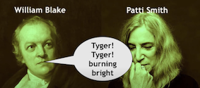 3. De tieger is de vertaling die ik maakte van het gedicht The Tyger van William Blake. Patti Smith zing het. Ik lees mijn vertaling. (Op het einde speelt Mark Allen een instrumentale cover van Wild Horses van The Rolling Stones.) Patti Smith en ik↗︎